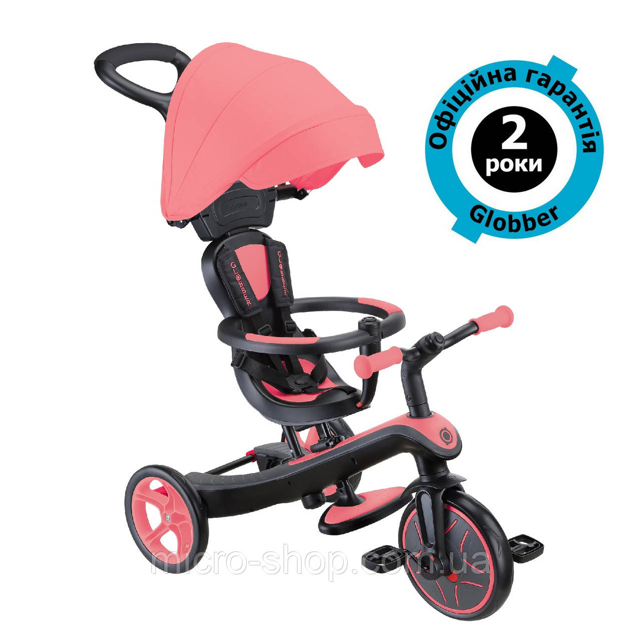 Дитячий велосипед Globber Explorer Trike 4in1 Coral Pink (рожевий)